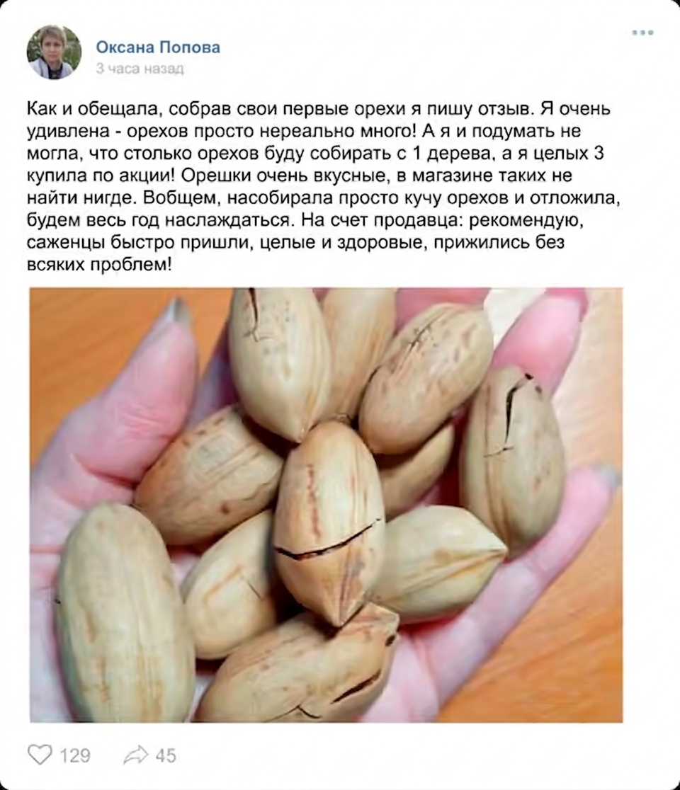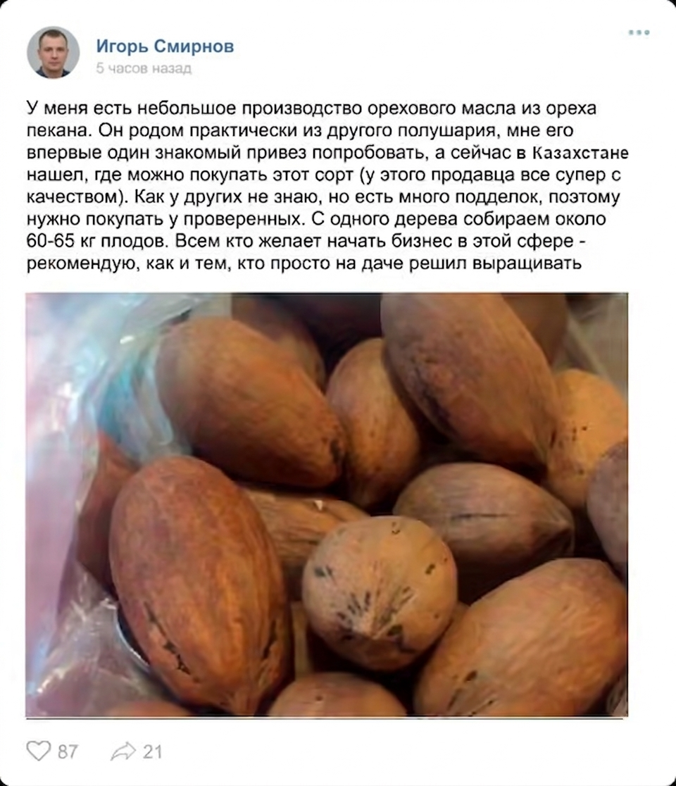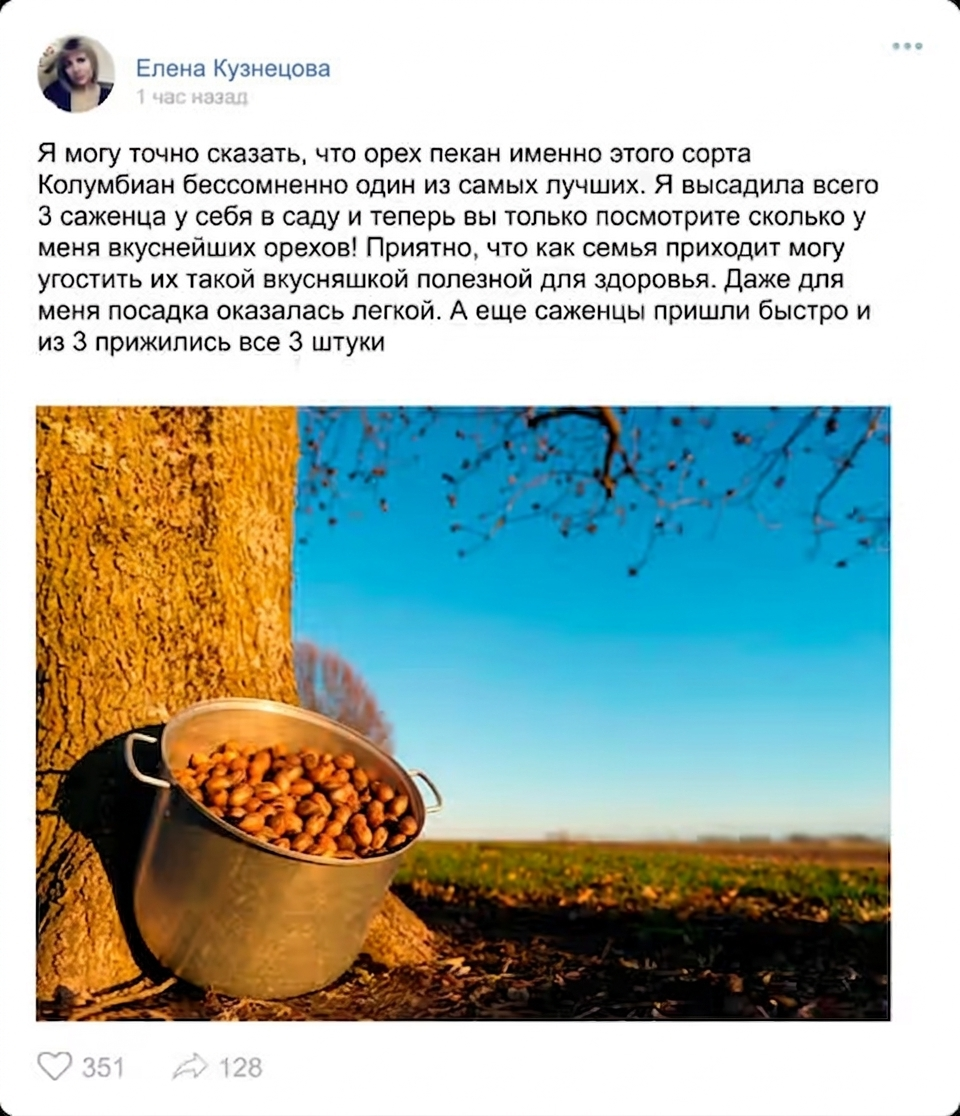 Секунд Орех пекан "Колумбиан": 5 лет работы лучших селекционеров из России, чтобы адаптировать сорт под местный климат