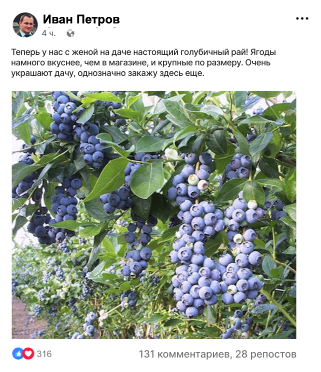 Вы получите полностью готовые к посадке саженцы голубики, нужно лишь заказать